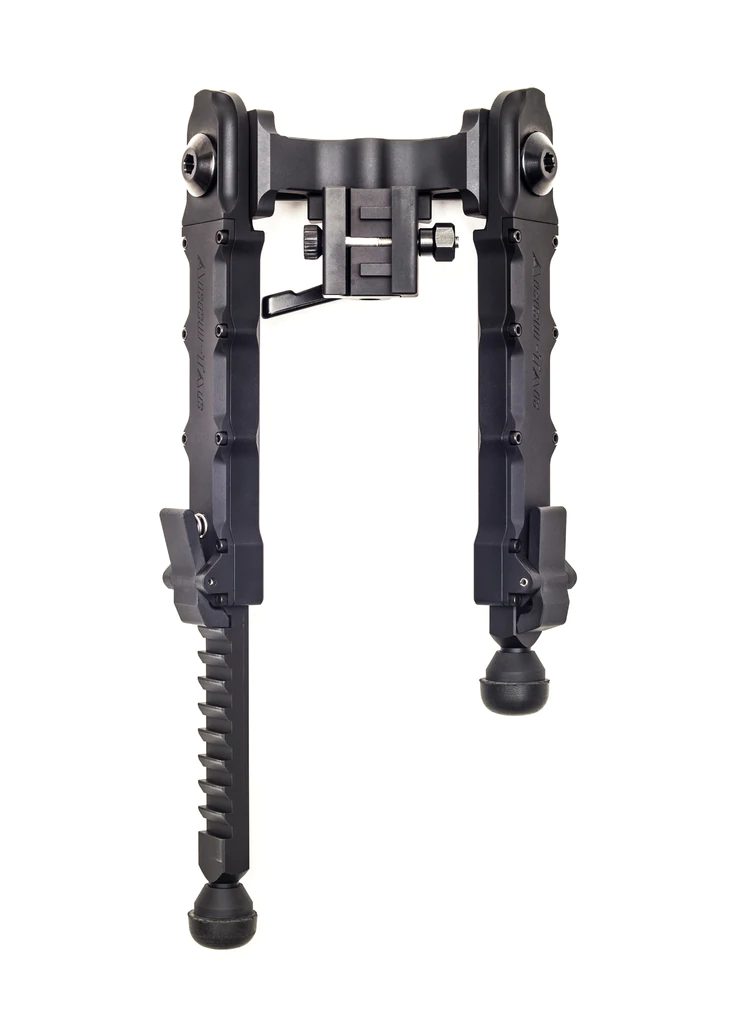 Dvojnožka neboli bipod Accu-Tac HD-50 pro zbraně až do ráže .50 BMG je vyrobena z lehké a pevné hliníkové slitiny 6061-T6 s kovovými částmi v oblastech náchylných na namáhání. Nohy bipodu lze zajistit ve čtyřech polohách při 45° a 90° a lze je také vytáhnout v pěti pozicích s aretací zacvaknutím. Po zatlačení zajišťovací páky se nohy automaticky zasunou. Je také možné naklonit pušku doleva nebo doprava a zajistit ji v požadovaném úhlu. Montáž je extrémně snadná, protože se bipod upevňuje na lištu typu weaver. Černá tvrdá eloxace chrání před korozí.