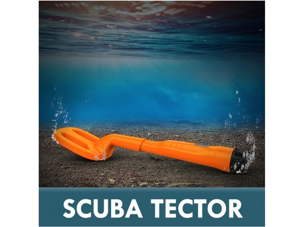 Scuba Tector - vodotěsný detektor na potápění. Rádi se potápíte, šnorchlujete a nebo se prostě jen chcete zabavit na dovolené? Scuba Tector je ideální detektor k vodě - slané i sladké! Díky pulsní technologii a automatickému odladění je detektor použitelný v jakýchkoliv podmínkách, ať už na suchu, na pláži, či pod vodou. Cívka o velikosti 13x10cm zajišťuje optimální dosah detektoru na mince a prsteny až okolo 15cm.
