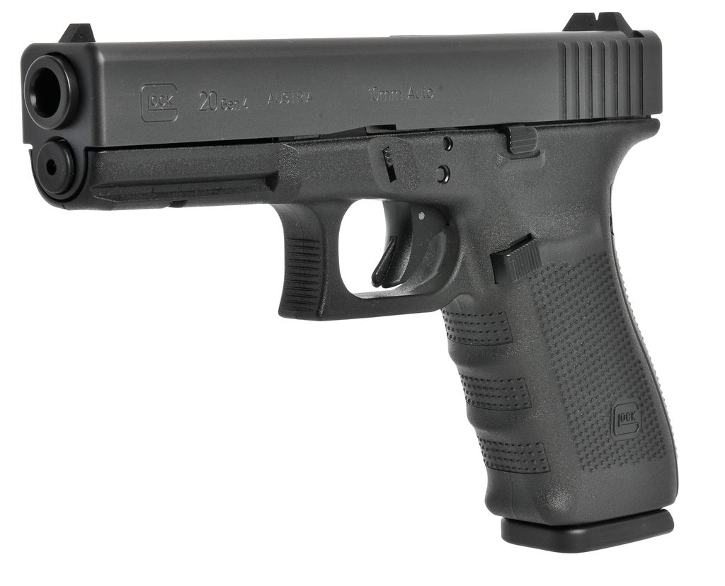 Pistole GLOCK 20 Gen. 4 s dvouřadým zásobníkem je v ráži 10 mm Auto. Pistole je vhodná pro denní nošení a terčovou střelbu. Standardně jsou pistole Glock dodávány v sadě s 3 ks zásobníky na 15 nábojů. Dále je dodáván s kufříkem na zbraň, základním čištěním a výměnnými hřbety s bobřím ocasem o dvou rozdílných šířkách aby sedly každé ruce (výměnný dlouhý pin a nástroj pro výměnu hřbetů). Model 20 je častou volbou střelců, kteří chtějí spolehlivou a pohodlnou zbraň pro sebeobranu i proti medvědům (nejprodávanější zbraň na Aljašce na obranu proti losům a medvědům grizzly) a zájmovou střelbu na střelnici. Zbraň má služební rozměry (vojenská velikost pistole - Full Size) a nízkou hmotnost.