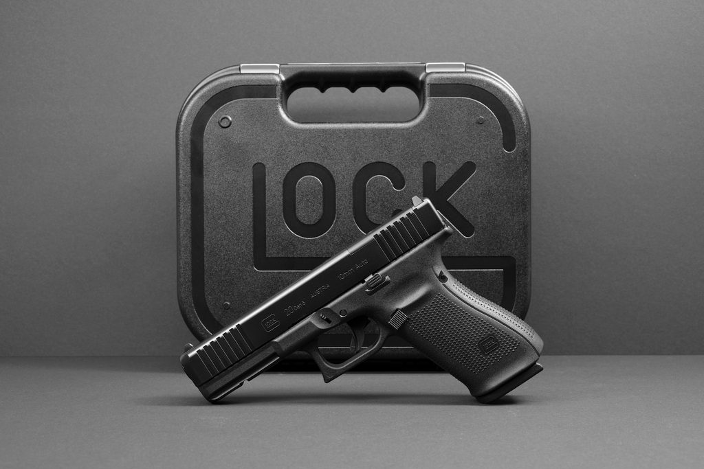Pistole GLOCK 20 MOS Gen. 5 s dvouřadým zásobníkem je v ráži 10 mm Auto. Pistole je vhodná pro denní nošení a terčovou střelbu. Standardně jsou pistole Glock dodávány v sadě s 2 ks zásobníky na 15 nábojů. Dále je dodáván s kufříkem na zbraň, základním čištěním a výměnnými hřbety s bobřím ocasem o dvou rozdílných šířkách aby sedly každé ruce (výměnný dlouhý pin a nástroj pro výměnu hřbetů). Model 20 je častou volbou střelců, kteří chtějí spolehlivou a pohodlnou zbraň pro sebeobranu i proti medvědům (nejprodávanější zbraň na Aljašce na obranu proti losům a medvědům grizzly) a zájmovou střelbu na střelnici. Zbraň má služební rozměry (vojenská velikost pistole - Full Size) a nízkou hmotnost.