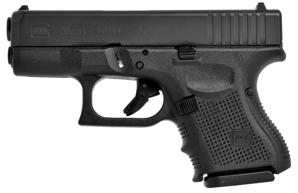 Pistole GLOCK 26 Gen. 4 s dvouřadým zásobníkem je v ráži 9x19. Pistole je snad nejčastější volbou střelců pro denní nošení a sebeobranu. Standardně jsou pistole Glock dodávány v sadě s 2 ks zásobníky na 10 nábojů. Dále je dodáván s kufříkem na zbraň, základním čištěním a výměnnými hřbety s bobřím ocasem o dvou rozdílných šířkách aby sedly každé ruce a 2 výměnnými hřbety pro rozšíření rukojeti (výměnný dlouhý pin a nástroj pro výměnu hřbetů). Model 26 je častou volbou střelců, kteří chtějí spolehlivou a pohodlnou zbraň pro sebeobranu. Zbraň má kompaktní rozměry (velikost pistole - Subcompact) a nízkou hmotnost. Je tak ideální pro skryté nošení.