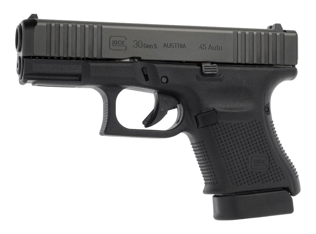 Pistole GLOCK 30 S Gen. 5 s dvouřadým zásobníkem je v ráži .45 ACP. Pistole je vhodná pro denní nošení a terčovou střelbu. Standardně jsou pistole Glock dodávány v sadě s 2 ks zásobníky na 10 nábojů. Dále je dodáván s kufříkem na zbraň, základním čištěním, 3 výměnné hřbety. Model 30 je častou volbou střelců, kteří chtějí spolehlivou a pohodlnou zbraň pro sebeobranu a zájmovou střelbu na střelnici. Zbraň má služební rozměry (policejní velikost pistole - Compact) a nízkou hmotnost. Model S má zúžený závěr pro nižší váhu.