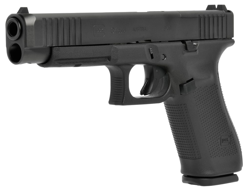 Pistole GLOCK 34 MOS Gen. 5 s dvouřadým zásobníkem je v ráži 9x19. Pistole je vhodná pro denní nošení a terčovou střelbu. Standardně jsou pistole Glock dodávány v sadě s 2 ks zásobníky na 17 nábojů. Dále je dodáván s kufříkem na zbraň, základním čištěním a výměnnými hřbety s bobřím ocasem o dvou rozdílných šířkách aby sedly každé ruce (výměnný dlouhý pin a nástroj pro výměnu hřbetů). Model 34 je častou volbou střelců, kteří chtějí spolehlivou a pohodlnou zbraň pro sebeobranu a zájmovou střelbu na střelnici. Zbraň má rozměry velké pistole (závodní velikost pistole - Full Size Competition) a nízkou hmotnost.