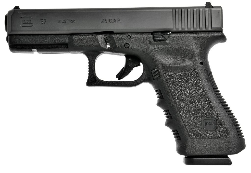 Pistole GLOCK 37 Gen. 3 s dvouřadým zásobníkem je v ráži .45 G.A.P. Pistole je vhodná pro denní nošení a terčovou střelbu. Standardně jsou pistole Glock dodávány v sadě s 2 ks zásobníky na 10 nábojů. Dále je dodáván s kufříkem na zbraň, základním čištěním. Model 37 je častou volbou střelců, kteří chtějí spolehlivou a pohodlnou zbraň pro sebeobranu a zájmovou střelbu na střelnici. Zbraň má služební rozměry (vojenská velikost pistole - Full Size) a nízkou hmotnost.