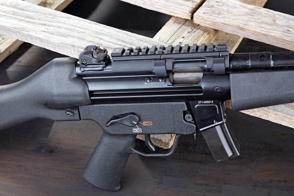 SP5 je dodávána s oboustrannou pojistkou. Vypouštěč zásobníku ve dvou variantách (tlačítko na pravé straně zbraně a tradiční pádlo u zadní strany zásobníku). Zbraň je dodávána s 10 raným zásobníkem, ale je možné používat všechny standardní zásobníky pro MP5. otočné hledí pro úpravu vzdálenosti od terče. Muška je celokrytá a nehrozí tak poškození nárazem. Tradiční HK slap pro uvolnění závěru z uzamčené zadní polohy. Hlaveň je vybavena jak tradičním Tri Lug adaptérem tak i závitem 1/2-28" pro instalaci tlumiče nebo kompenzátoru. Zvětšený lučík pro střelbu v rukavicích. Pažba je pevná.