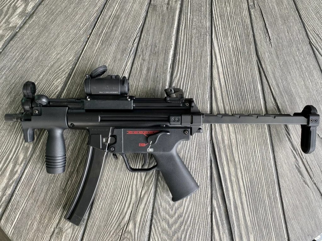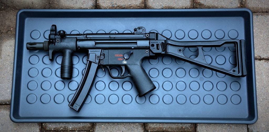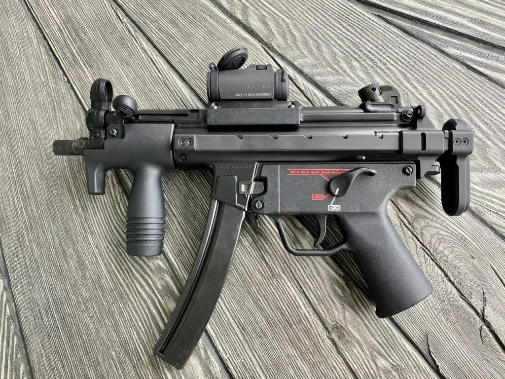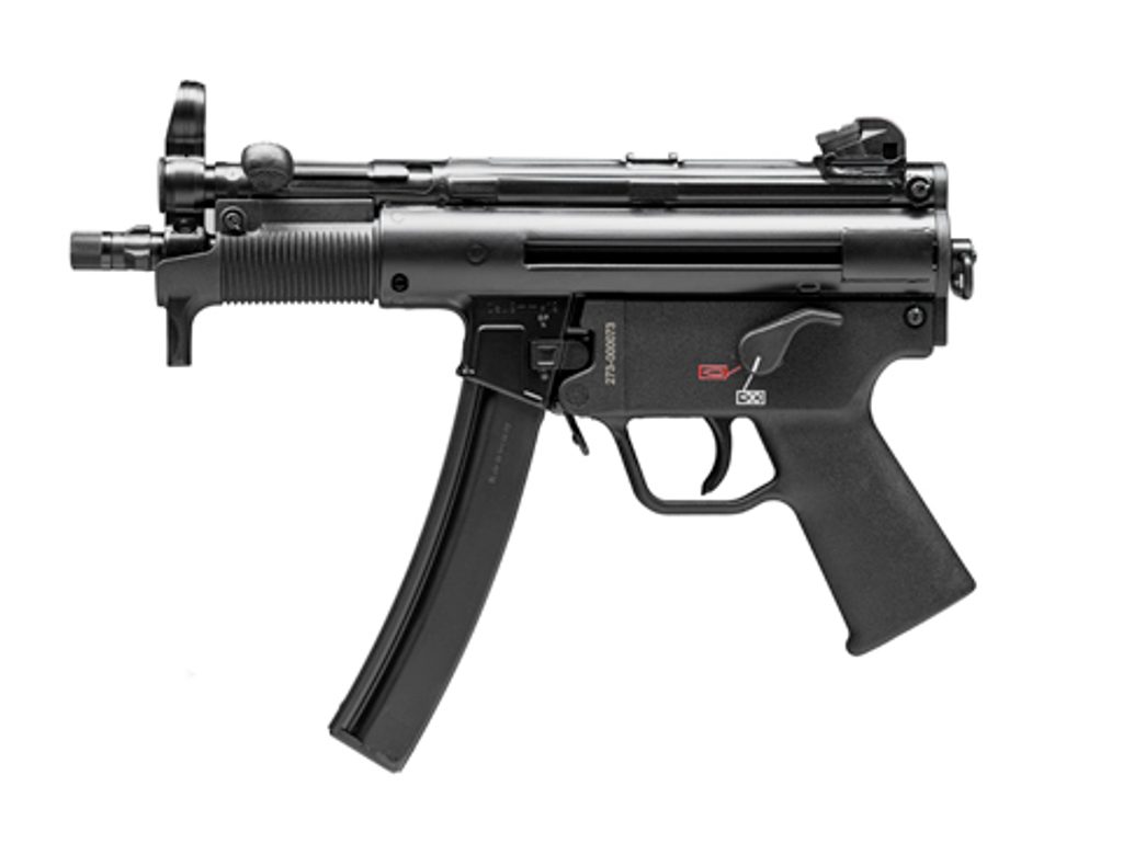 Heckler & Koch SP5K-PDW je prodávána jako samonabíjecí pistole v ráži 9 mm Luger (9X19). Tato zbraň je civilní variantou legendárního samopalu H&K MP5K (Kurz), která je používána profesionály po celém světě. Model MP5 se nejvíce proslavil při operaci Nimrod, kdy Britská speciální jednotka SAS zasahovala na Íránské ambasádě v Lodíně. Řada zbraní MP5 vychází z pušky G3 používající zmenšený a upraveny válečkový mechanismus (roller delayed blowback).