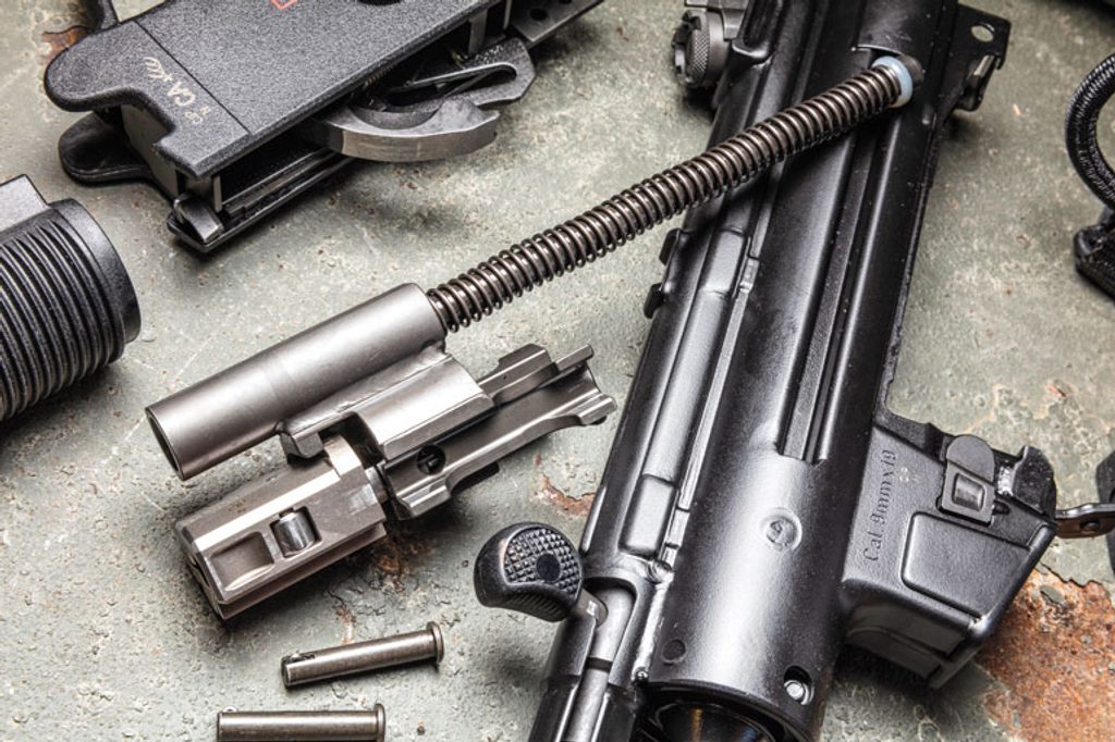 - Zbraň používá zásobníky typu MP5 pro ráže 9 mm Luger.