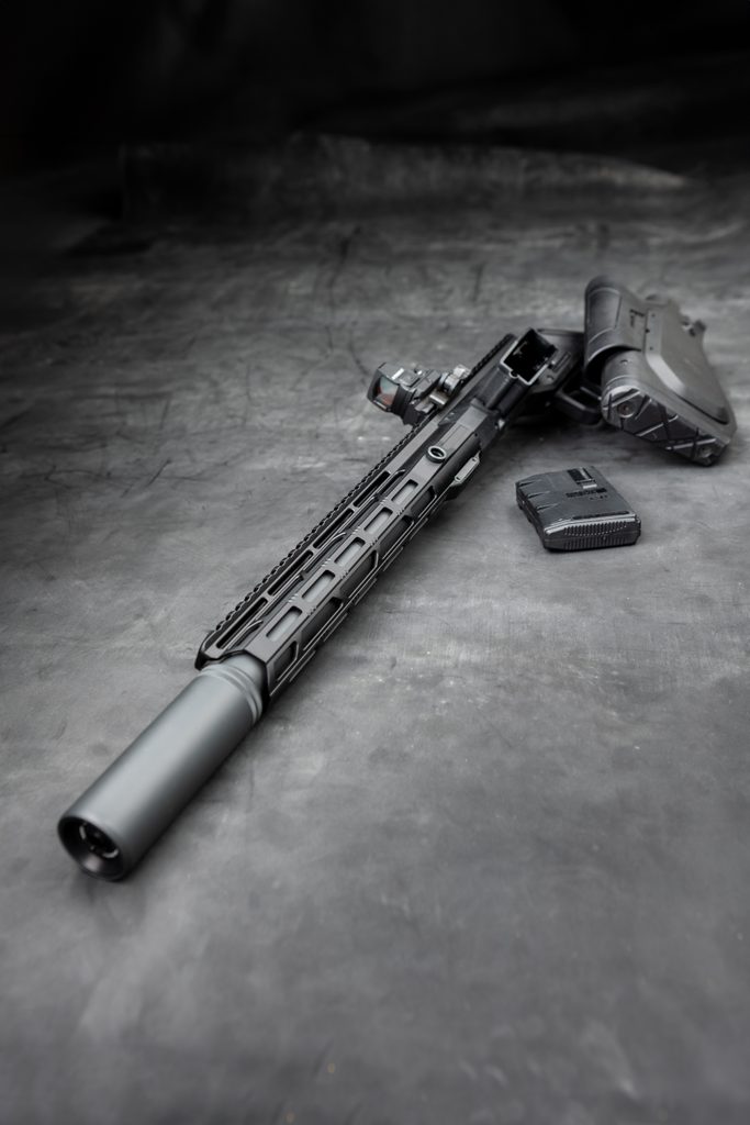 The smooth integration of the suppressor into the handguard, both with identical diameters, ensures an sleek look and improved handling.