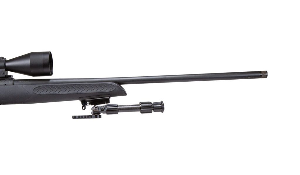 Karbonový bipod (dvojnožka) Caldwell Accumax Premium 9 - 13" s kloubem. Bipod se montuje na poutko pro řemen. Bipod je vyrobený z uhlíkových vláken (karbon) a díky tomu je mimořádně lehký. Hmotnost je pouze 265 g. Kloub bipodu umožňuje naklánění do stran a tím jemné vyrovnání nerovností povrchu, což je velmi důležité, protože u dvojnožky které mají nožky vysouvací skokem je v případě nerovností nutné korigovat náklon zbraně, aby výšková korekce propadu střely byla opravdu svislá. Bipod je sklopný, takže při transportu zbraně zabírá minimum místa a je nastavitelný v rozsahu od 9 - 13" (23 – 33 cm).