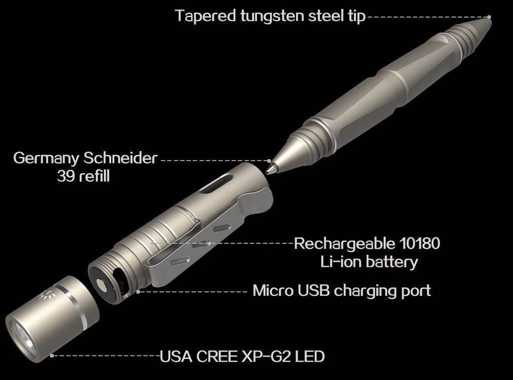 LED svítilna a taktické pero Wuben TP10 130lm
