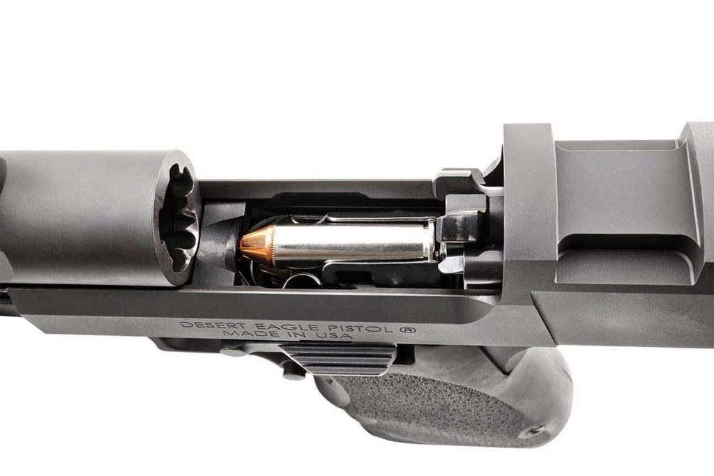 Po 25 letech, kdy byla pistole Desert Eagle® Pistol prezentována a glorifikována v bezpočtu filmů, televizních pořadů a videoher, se stala ikonou popkultury. Desert Eagle Pistol si můžete přizpůsobit různými působivými povrchovými úpravami, abyste této nadčasové střelné zbrani dodali svůj osobitý šmrnc. Všechny modely jsou vybaveny kompletní lištou picatinny pro příslušenství na hlavni od konce komory až přímo za mušku vzadu na závěru je pistole vybavená standardními oboustrannými pojistkami. Integrovaný kompenzátor na hlavni.