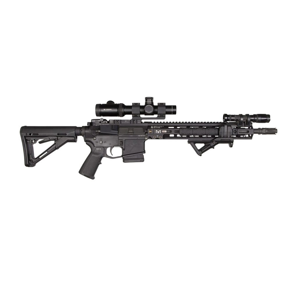 Magpul AFG Angled Fore Grip je populární ergonomická šikmá rukojeť na předpažbí, která se uchycuje na picatinny lištu. Šikmá rukojeť poskytuje stabilní uživatelské rozhraní, které snižuje únavu a umožňuje přesnější ovládání zbraně. Umístěním střelcovy ruky blíže k hlavni, na rozdíl od konvenčních vertikálních předních rukojetí, pomáhá AFG zmírnit zpětný ráz. Vyrobeno v USA.