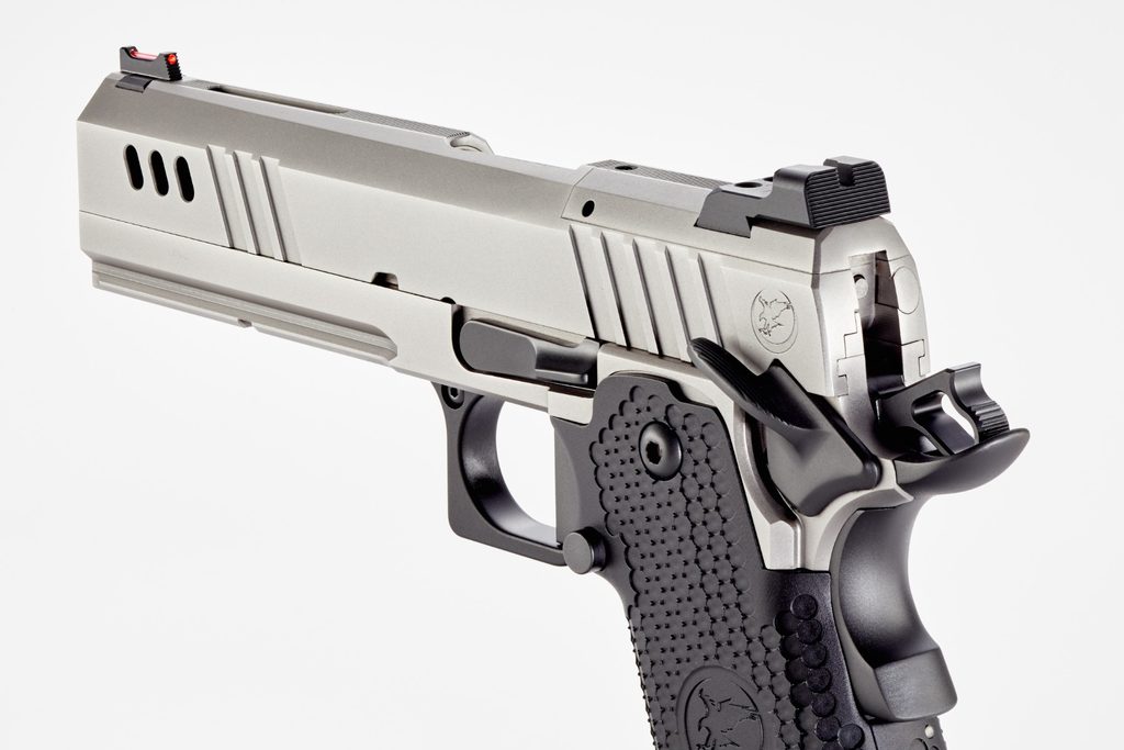 BDS9 má všechny funkce a možnosti, které potřebujete. Závěr a rám jsou potaženy stříbrným DLC povrchem, který vypadá skvěle a je také velmi odolný. Hlaveň a ovládací prvky byly provedeny v černém DLC pro elegantní kontrast. Hliníková rukojeť byla eloxována černou barvou, aby byla zajištěna dlouhotrvající pevnost a odolnost proti oděru. Tato rukojeť se také vyznačuje naší novou agresivní texturou, která poskytuje rukojeť, která se jistě přilepí na vaše ruce bez ohledu na klima. Agresivní textura rukojeti zajišťuje pevné uchopení a umožňuje větší přesnost a jistotu při střelbě.
