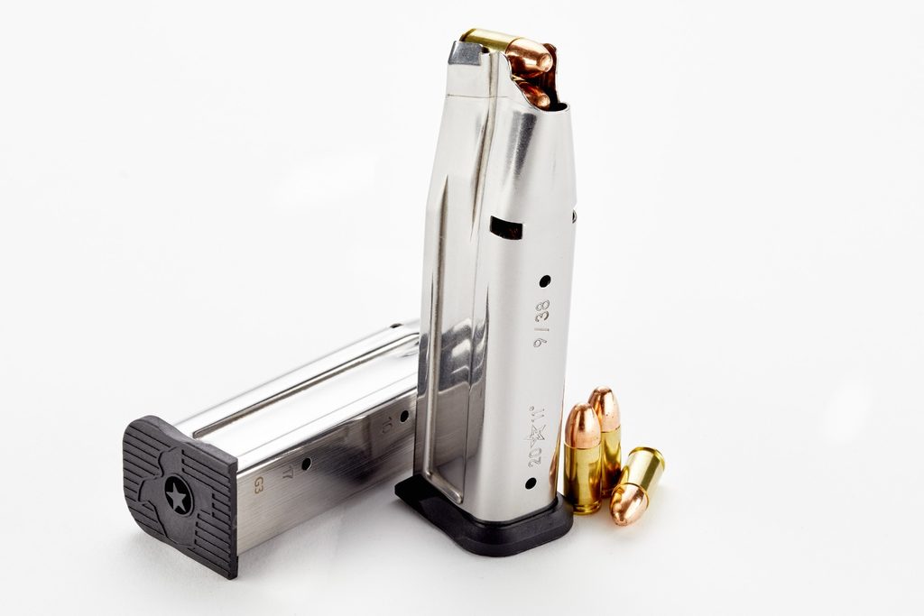 Tento soutěžní dvojitý zásobník je dodáván se dvěma posuvnými zarážkami, oba v černém DLC. První zarážka závěru funguje jako jakákoli standardní záchyt závěru 1911 a uzamyká závěr při prázdném zásobníku. Druhý záchyt závěru je odpojený pro soutěžní střelce, kteří nechtějí, aby se závěr zablokoval. To dává střelcům jistotu, že vědí, že jakékoli možné přetažení zásobníku nebo předčasné zablokování není možné při rychlém chodu pistole v soutěži.