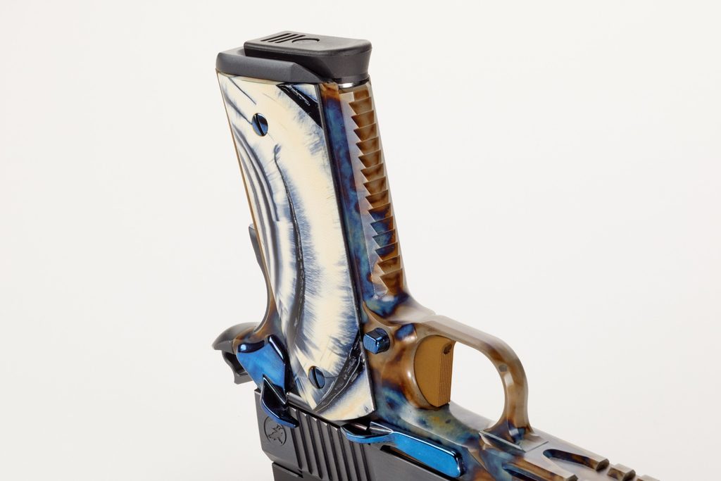 Nighthawk Custom VIP Agent 2 je unikátní kombinací starosvětských dokončovacích technik a moderního obrábění a vytváří tak skutečný kousek dědictví 21. století. Model Agent 2 byl navržen tak, aby posunul hranice pistole 1911 a přinesl jí novou úroveň inovace. Partnerství mezi Nighthawk Custom, Turnbull Restoration a Agency Arms vytváří skutečně unikátní a ohromující střelnou zbraň. VIP Agent 2 je vyroben s těmi nejlepšími úpravami, včetně klasického tvrzeného a leštěného rámu. Vysoce leštěný rám modřený uhlím je spárován s vysoce leštěným, nitridace "modření" závěru, vypouštěčem zásobníku, piny a palcovou pojistkou. Hlaveň byla dokončena ve vysoce leštěném DLC. K tomu všemu má přední mušku z masivního zlata ze 14k zlata, krásnou sadu rukojetí z mamutí slonoviny, dva zásobníky zdobené drahokamy a vlastní kufřík Negrini.
