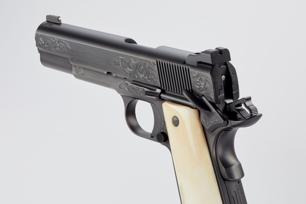 Nighthawk Custom VIP Black je ručně vyrobený a rytý pro ty, kteří ocení vkusné množství ručního rytí na zbrani. Tato pistole 1911 je spojena s černým diamantovým povlakem, vysoce kvalitní konstrukcí a povrchovou úpravou Nighthawk Custom. Umělecké dílo prezentační kvality s odolnou povrchovou úpravou, kterou lze nosit a používat denně. Jako jeden z našich nejexkluzivnějších modelů je VIP Black postaven jako skutečné dědictví. Tato pistole je pečlivě a vkusně ručně rytá mistrem rytcem. VIP Black je také vybavena muškou ze 14karátového zlata a střenkami z žirafí kosti. Aby byl tento skutečně elitní balíček kompletní, VIP Black je dodáván v prezentačním pouzdře z tvrdého ořechového dřeva.