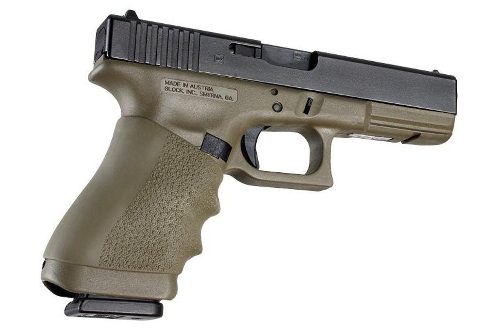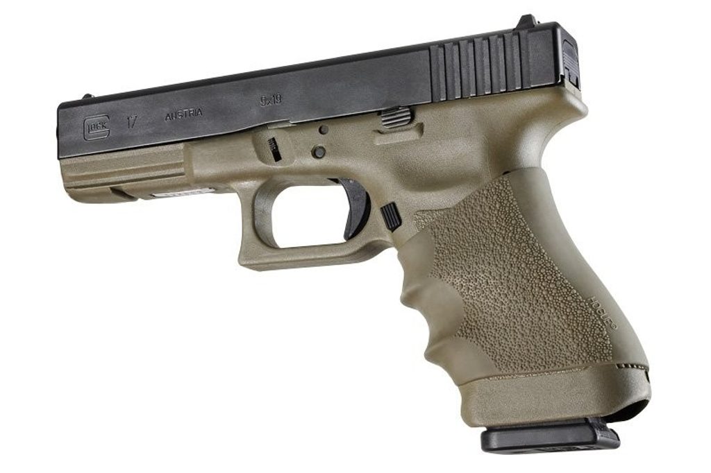 Gumové rukojeti Hogue jsou tvarovány z odolného syntetického kaučuku, který není houbovitý ani lepkavý, ale zároveň poskytuje měkký pocit pohlcující zpětný ráz bez ovlivnění přesnosti. Tento moderní kaučuk vyžaduje zcela odlišný proces lisování než běžný neopren, což má za následek mnohem lepší přilnavost. Flexibilita použitých materiálů a proces tvarování umožňuje vyrábět pryžové rukojeti s vlastnostmi, které fungují pro všechny zbraně.