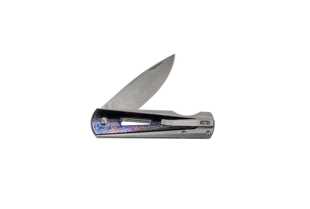Mechanismus "A-Joint" má několik výhod. Na jedné straně je klouzavý spojovací mechanismus spojen s kloubem pouze jednou dvojitou pružinou (tvar křídla vážky). Horní část, která drží čepel otevřenou, je díky své pevnosti materiálu vyšší než tlak, což umožňuje snadnější a extrémně rychlé otevření. Na druhé straně je délka čepele větší než u běžných systémů s kluzným řešením. Otevírání pomocí nehetníku představuje prostě klasiku. Délka čepele 82 mm, materiál čepele N690, tloušťka čepele 3,05 mm. Hmotnost 125 g, materiál rukojeti G10.