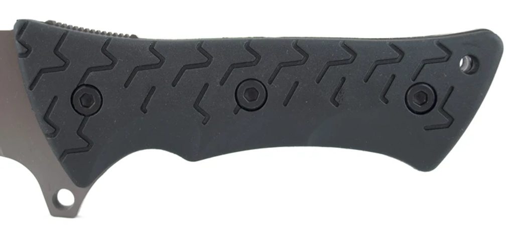Nůž konstrukce Fulltang Schrade LeRoy s čepelí z vysoce uhlíkaté nerezové oceli 8Cr13MoV o tvrdosti 57 HRC s antikorozní úpravou parkerizací o délce 267 mm a tloušťce 5 mm. Celková délka nože 418 mm. Rukojeť z TPE polymeru s protiskluzovou texturou. Hmotnost nože je 669 g. Součástí balení je pouzdro.