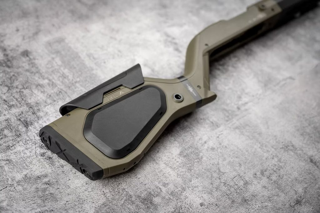 Pažby jsou dostupné v černé, pískové a zelené barvě.