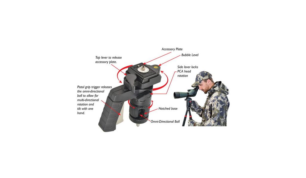 Adaptér je vybaven úchopovou pojistkou pro změnu náklonu. Vodováha pro kontrolu roviny. Adaptér je vybaven rychlo-upnutím s ložiskem. Pro upnutí zařízení slouží lišta Arca Spec, závit 1/4" a 3/8".