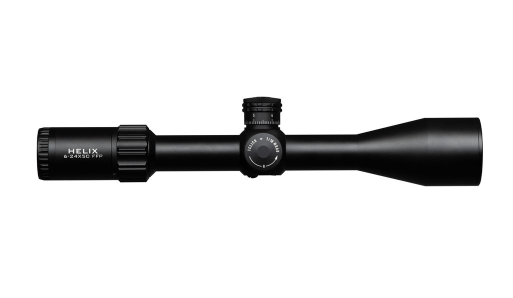 Se zvětšením 6x až 24 je puškohled Element Optics Helix vhodný pro použití na střední a dlouhé vzdálenosti. Záměrná osnova je kalibrována pro zvětšení 24x, ale s trochou matematiky ji lze používat také při zvětšení 12x a 6x. Nastavení zoomu usnadňuje páčka, kterou lze snadno odšroubovat a nahradit ji přiloženým šestihranným šroubem. U puškohledů Helix jsou na výběr dvě záměrné osnovy APR-1C a EHR-1C. Osnova APR-1C s nastavením kliku 0,1 Mrad a osnova EHR-1C s klikáním ¼ MOA.
