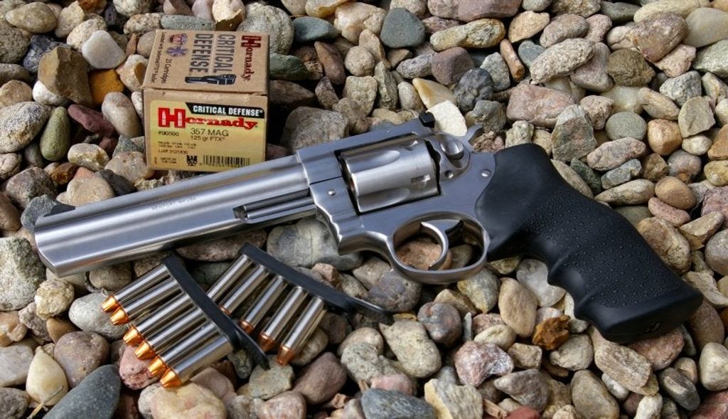 Revolver Ruger GP/KGP 161. Kvalitní ocelové provedení těla s pohodlnou kombinací polstrování a dřeva umožnuje střelbu po delší dobu bez ztráty pohodlí. Válec má kapacitu na sedm nábojů. Revolver pojme náboje ráže .375 Mag i .38 Special.