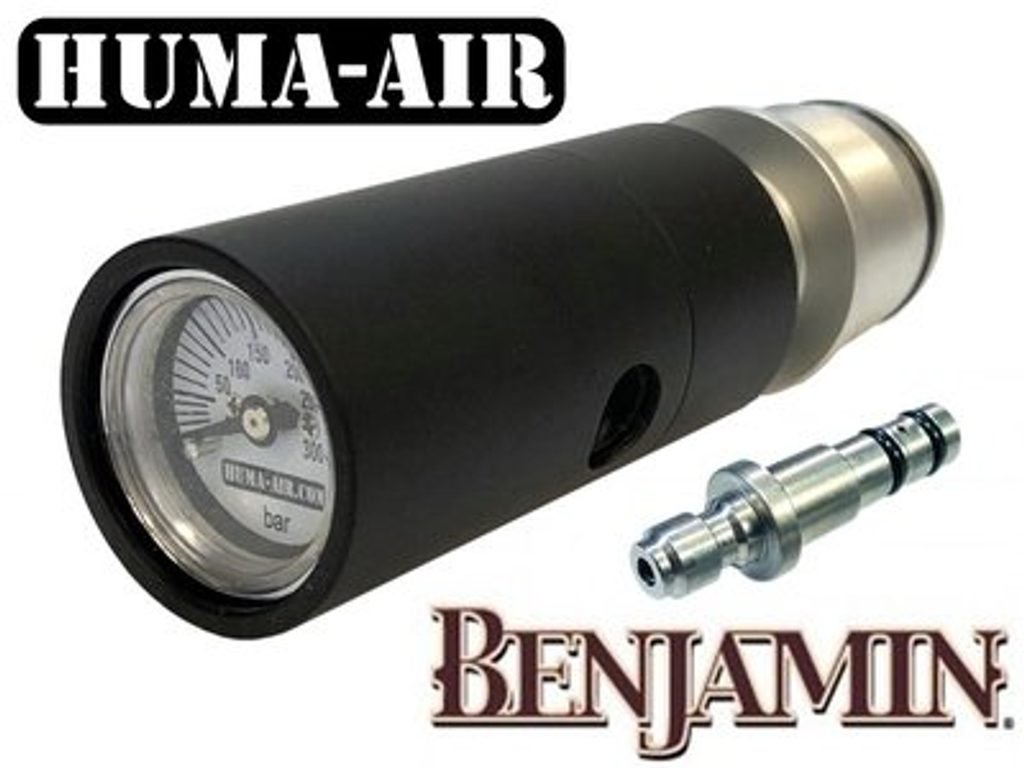 Rychloplnění (quickfill) s manometrem pro vzduchovky Crosman Benjamin Marauder od výrobce rehulátorů Huma. Quickfill Huma nahradí původní zátku s quickfillem od výrobce na konci kartuše a umožní vám tak mnohem komfortnější sledování tlaku při plnění. Quickfill Huma je vhodný obzvlášť při montáži regulátoru, kdy původní manometr ukazuje tlak regulátoru a ne tlak v kartuši.