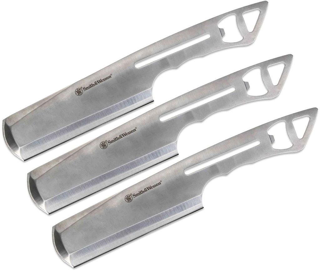 Sada vrhacích nožů z nerezové oceli Smith & Wesson Bullseye 10". Sada obsahuje 3 vrhací nože s integrovaným otvírákem na láhve