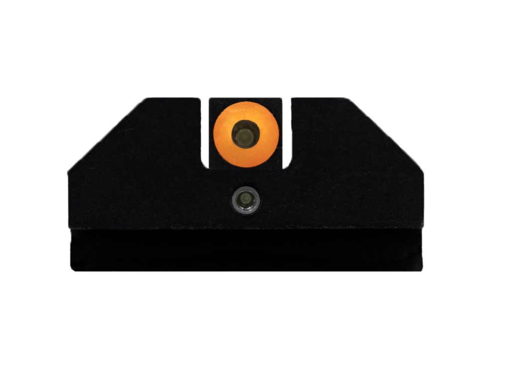 - Zadní hledí má bílý obrys s tritiovým středem