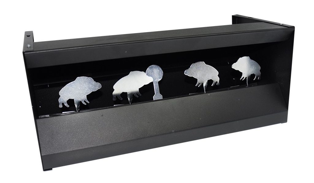 Střelnice Muzzler čtyři prasata, střelnice obsahuje čtyři siluety prasat, které po zásahu zůstanou v ležící pozici po zachycení magnetem. Po zasažení prostředního terčíku se kačeny opět postaví do původní polohy. Vhodné pro vzduchové zbraně do úsťové rychlosti 200 m/s a pouze olověné diabolky. Střelnice je vhodná zejména pro sportovní, tréninkovou, ale i pro rekreační střelbu. Celá střelnice je vyrobena z plechu o tloušťce 1mm a uvnitř jsou umístěny 4 terče ve tvaru prasat a jeden středový kruhový terčík. Prasata a kruhový terčík jsou vyrobeny z plechu o tloušťce 2mm.
