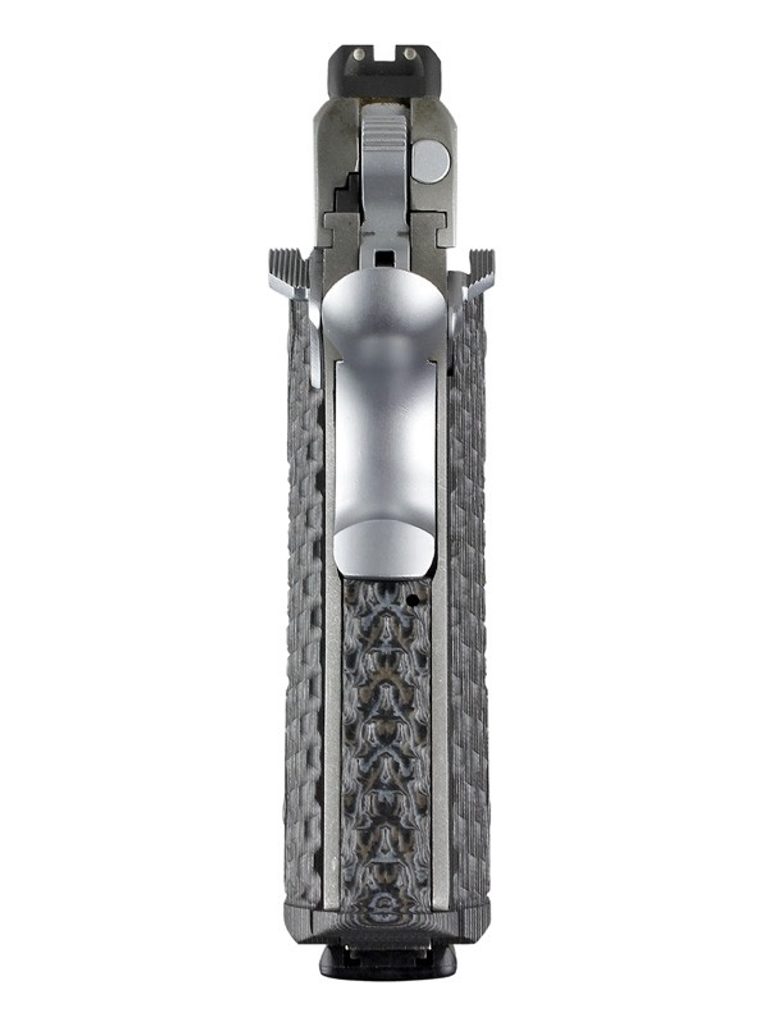 - Pevnost materiálu G10 umožňující nejtenčí možné rukojeti pro pistole s dvojitým zásobníkem.
