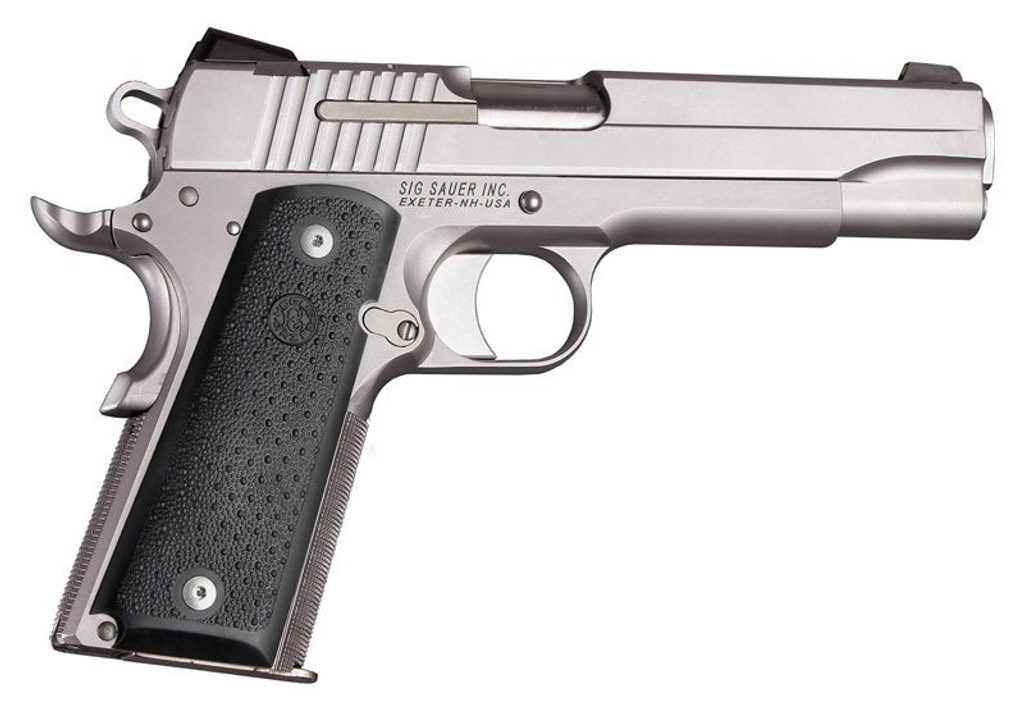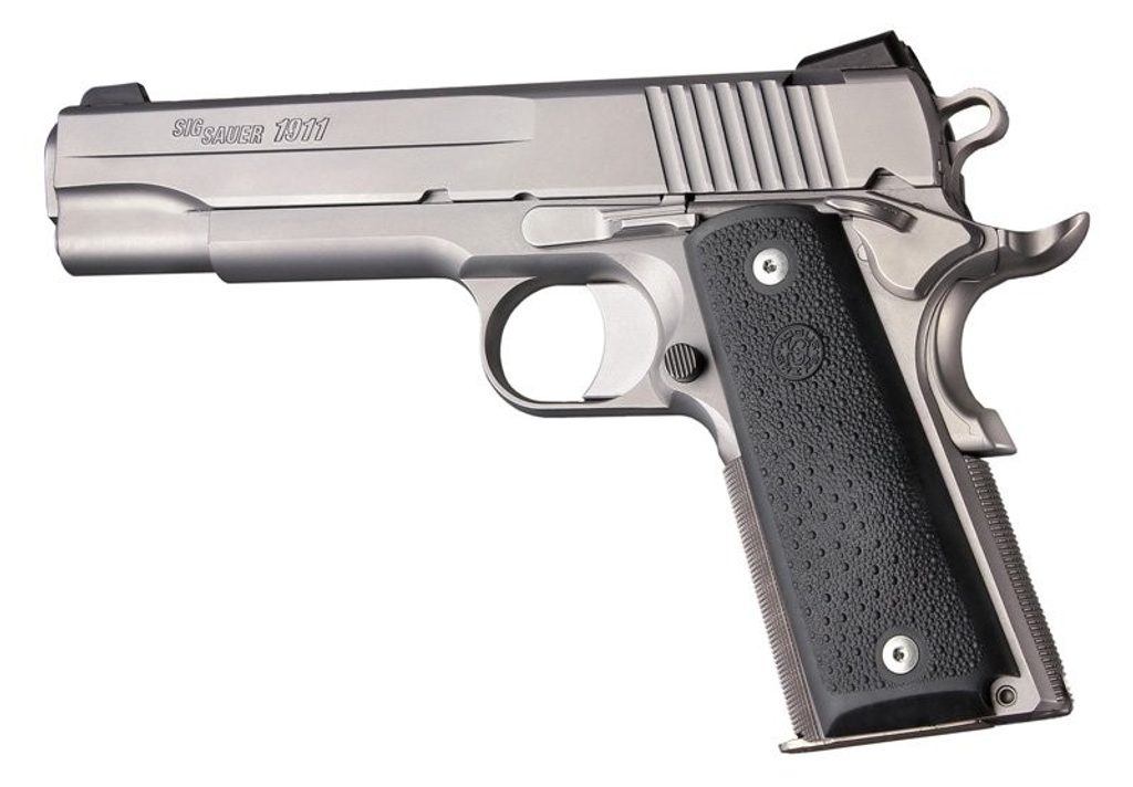- Hogue tvaruje své syntetické rukojeti tak aby odpovídaly ortopedickému tvaru ruky s vybráním pro prsty a příjemným zdrsněním.