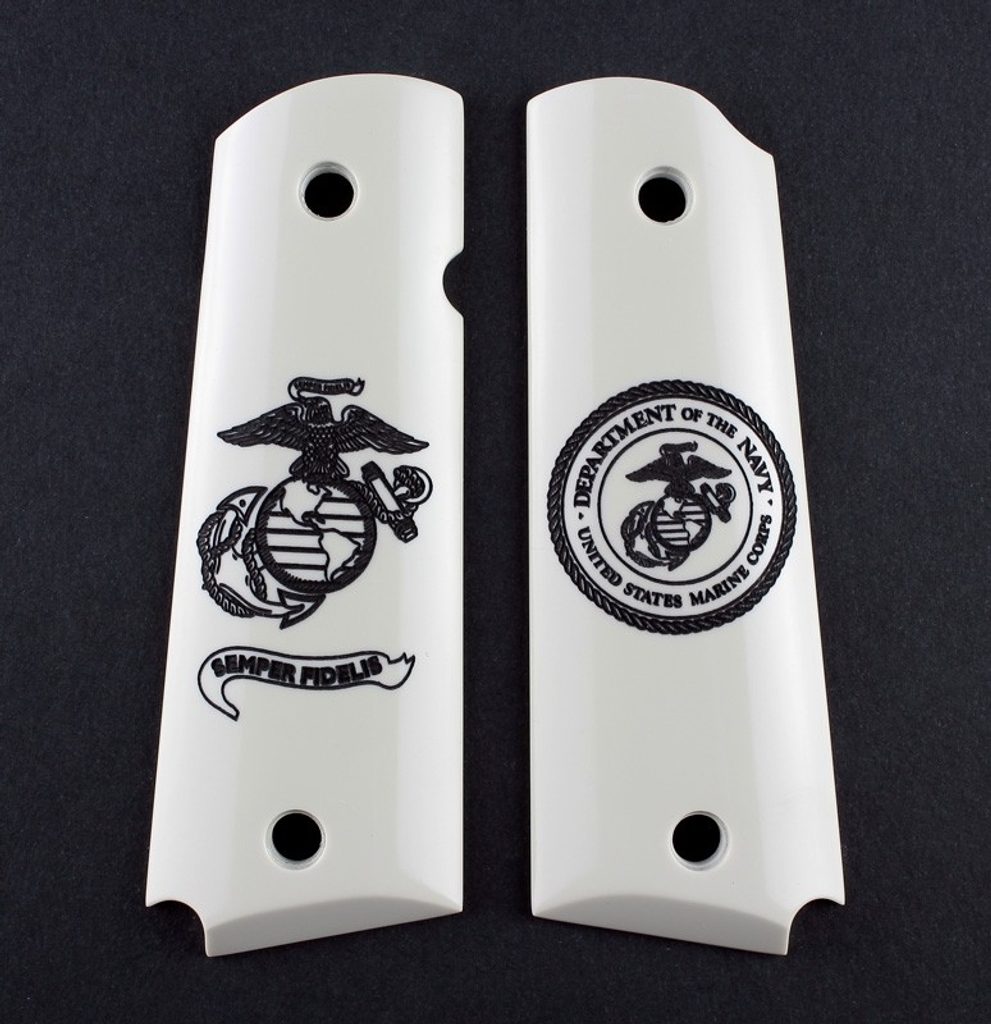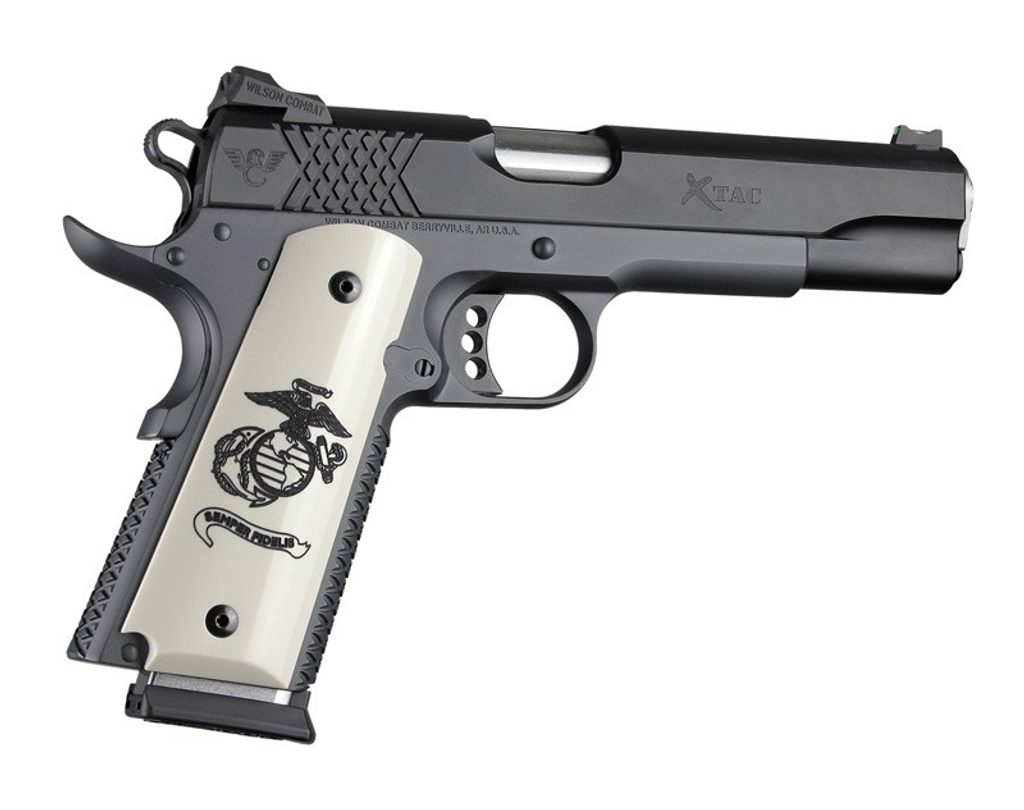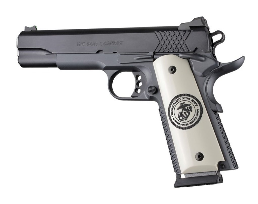 Hogue střenky pro pistole typu 1911 Govt. & Commander, polymer, barva slonovina, U.S. Marine Corps - Semper Fidelis (vždy věrný).