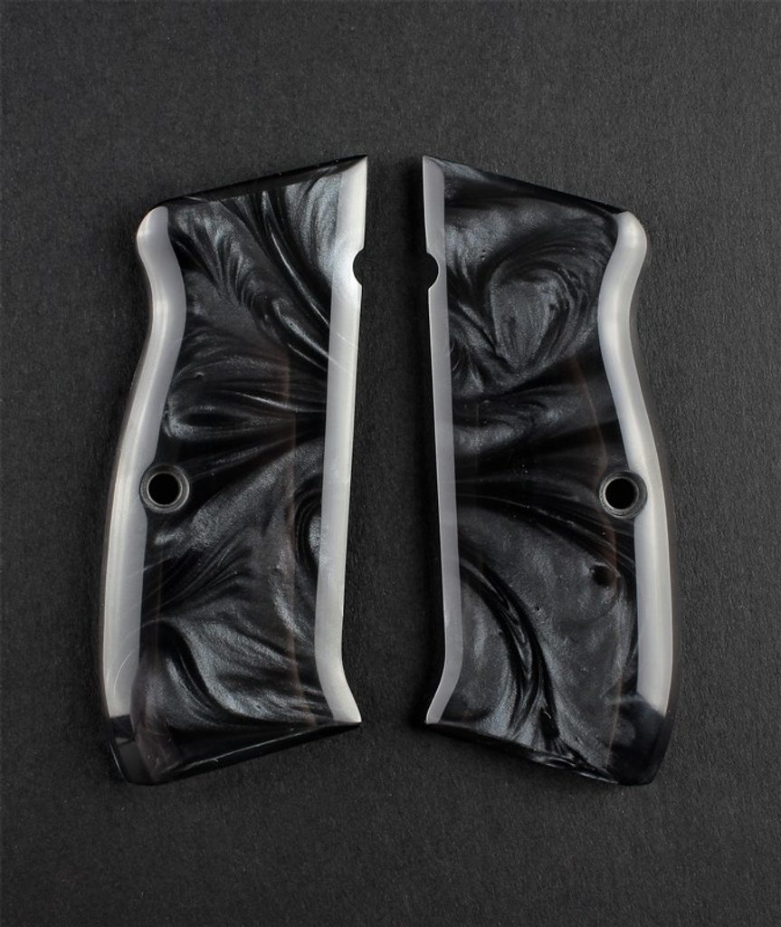 Perleťové polymerové střenky vylepšují vaši zbraň s jedinečným perleťovým vzhledem v černé, bílé nebo růžové variantě. Hladké polymerové střenky se vhledem slonoviny nabízejí klasickou atmosféru pro vaší zbraň. Střenky ze syntetické slonoviny jsou ryté laserem a ručně dokončeny tradičními vzory. Ať už si vyberete Old Glory, motivy Westernu nebo Grim reaper, tyto střenky nabízejí jedinečný způsob, jak přizpůsobit svou zbraň.