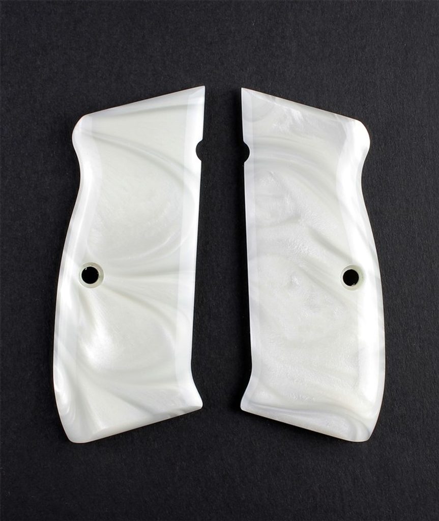 Perleťové polymerové střenky vylepšují vaši zbraň s jedinečným perleťovým vzhledem v černé, bílé nebo růžové variantě. Hladké polymerové střenky se vhledem slonoviny nabízejí klasickou atmosféru pro vaší zbraň. Střenky ze syntetické slonoviny jsou ryté laserem a ručně dokončeny tradičními vzory. Ať už si vyberete Old Glory, motivy Westernu nebo Grim reaper, tyto střenky nabízejí jedinečný způsob, jak přizpůsobit svou zbraň.