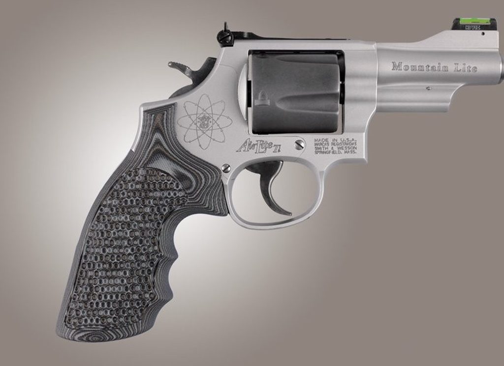 Hogue střenky pro revolvery Smith & Wesson K/L rám round butt, G10 Piranha barvy šedé a černé Damascus, zdrsněný.