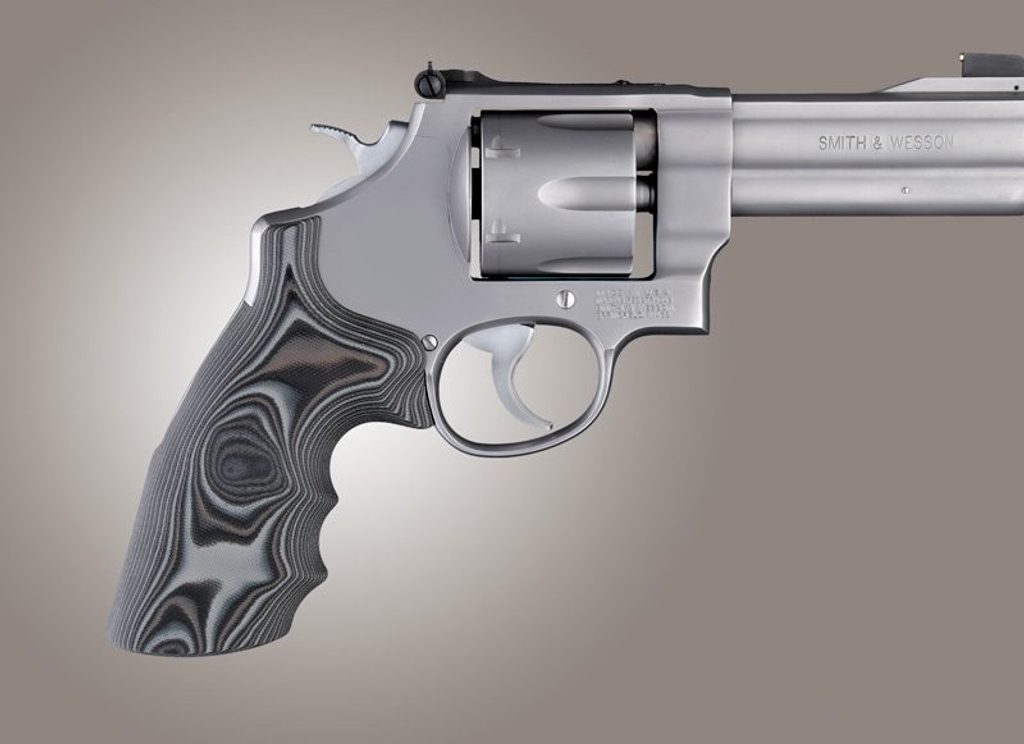 Hogue střenky pro revolvery Smith & Wesson N rám, compact, G10 barvy šedé a černé Damascus.