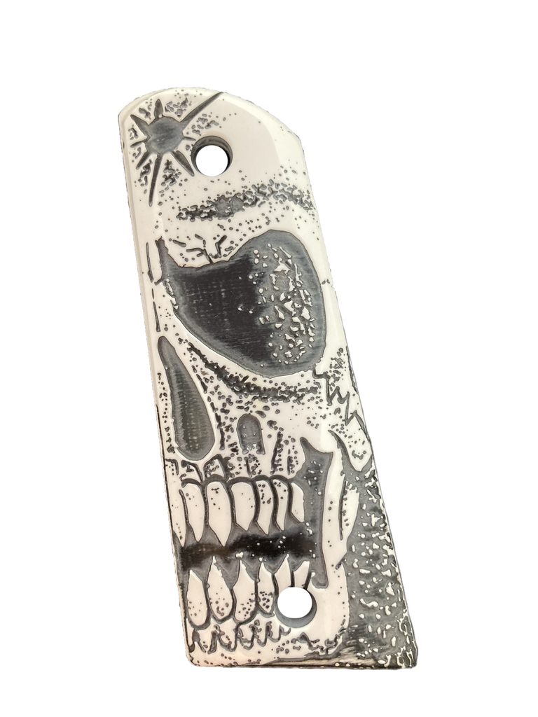 Střenky tureckého výrobce KSD pro pistole 1911 Govt. & Commander + klony Full Size v provedení bílý akrylát s motivem lebky.