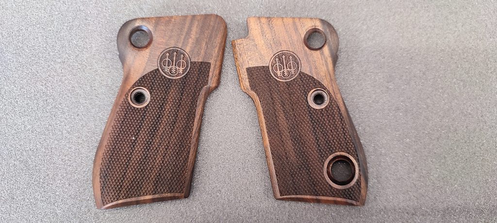Střenky KSD pro pistole typu Beretta 1951, ořechové dřevo s logem.