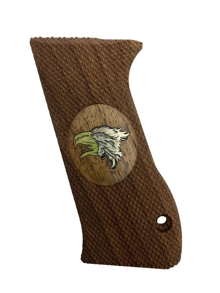 Střenky tureckého výrobce KSD pro IWI Jericho 941 FS45 v provedení turecký ořech se stříbrným motivem.