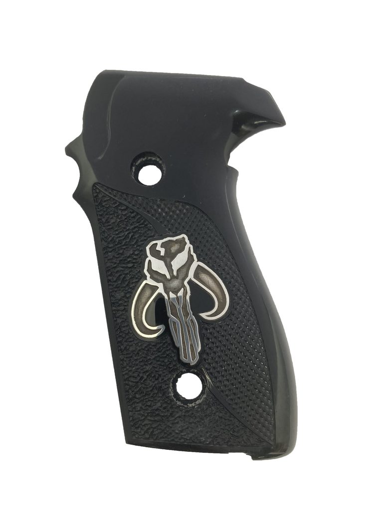 Střenky tureckého výrobce KSD pro pistole Sig Sauer P228/P229 v provedení černý akrylát se stříbrným motivem.