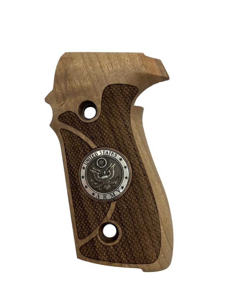 Střenky tureckého výrobce KSD pro pistole Sig Sauer P228/P229 v provedení turecký ořech se stříbrným motivem.