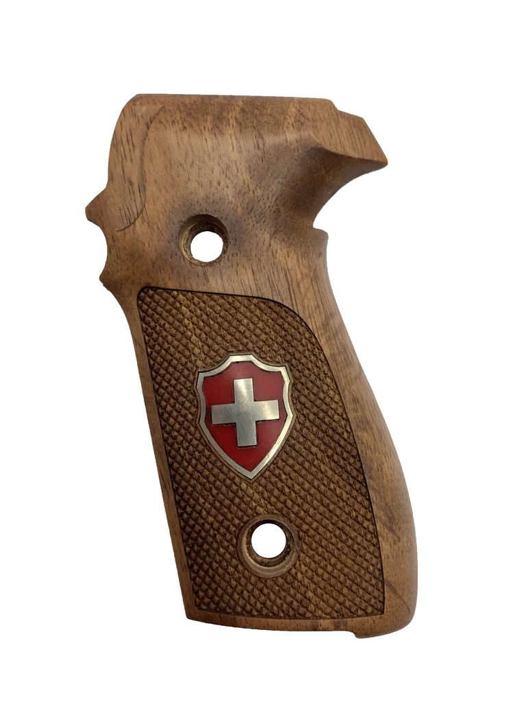 Střenky tureckého výrobce KSD pro pistole Sig Sauer P228/P229 v provedení turecký ořech se stříbrným motivem.