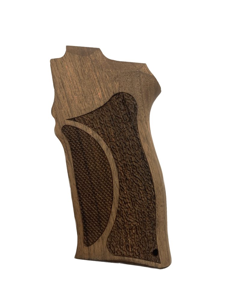 KSD rukojetí z tvrdého dřeva obsahuje oslnivou řadu exotických dřevin a vzorů, z nichž každá je jedinečným uměleckým dílem a jemným řemeslným zpracováním. Každá rukojeť je upravena dle požadavků: hladký leštěný povrch nebo zdrsněný povrch. Vaše rukojeť bude vyrobena z ušlechtilého tvrdého dřeva, které má vytvořit přirozené spojení mezi vámi a vaší oblíbenou zbraní.
