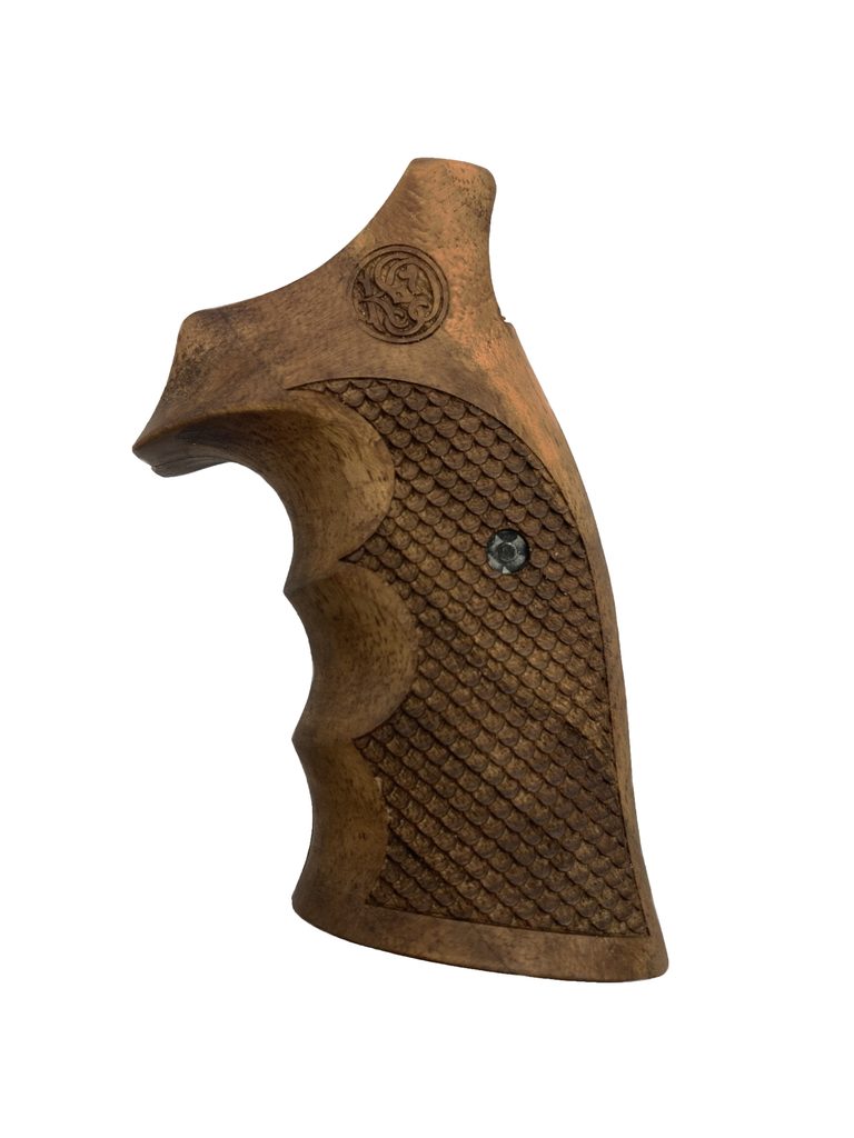 Střenky tureckého výrobce KSD pro revolvery Smith & Wesson K/L rám round butt turecký ořech s logem 2.