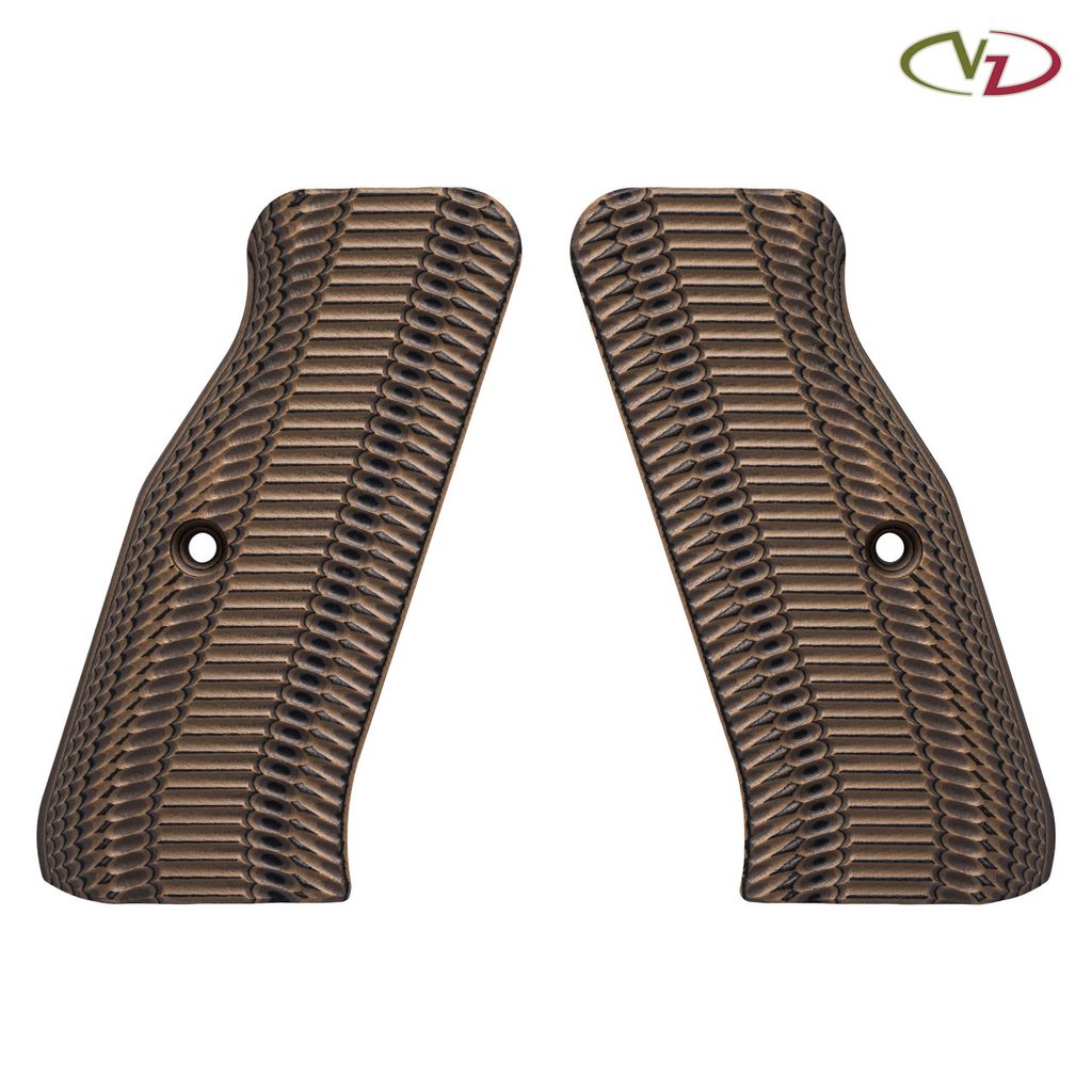 Střenky světoznámé společnosti VZ Grips pro pistole typu CZ Shadow 2. Materiál G10, barva Hyena Brown (písková a hnědá). Zdrsnění je střední úrovně tedy citelné při úchopu, ale ne nepříjemné. Toto zdrsnění napodobující hřbet aligátora bylo původně navrženo pro Precision Weapons Section of the U.S. Marine Corps. Hrany nejsou ostré a střenky jsou tak vhodné pro sportovní střelce i pro denní nošení.
