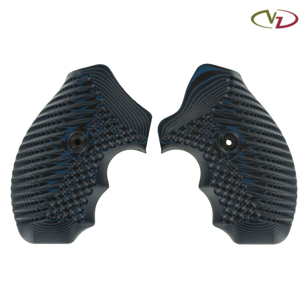 Střenky světoznámé společnosti VZ Grips pro revolvery typu Smith & Wesson J rám round butt. Materiál G10, barva Black Blue (černá a modrá). Zdrsnění je hrubé a proto vhodné pro přesnou sportovní střelbu i sebeobranu. Toto zdrsnění poskytuje střelci jistotu, že mu zbraň nevyklouzne nebo nevypadne z ruky a to i když bude mít střelec ruce splavené potem.