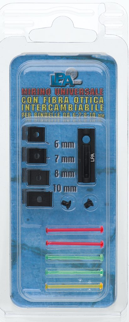 Světlovodná muška LPA pro brokovnice s šířkou lišty 6, 7, 8, 9 a  10 mm. Průměr vlákna 1,5 mm, délka vlákna 28 mm a průměr svítivé části cca 3,3 mm. Závit 2,6 a 3 mm.