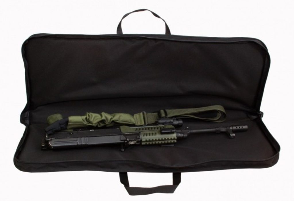 Taška na samopal s našitými pouzdry na zásobníky je vyrobena z nepromokavého materiálu. Vložená 20 mm pěna chrání zbraň před nárazy.